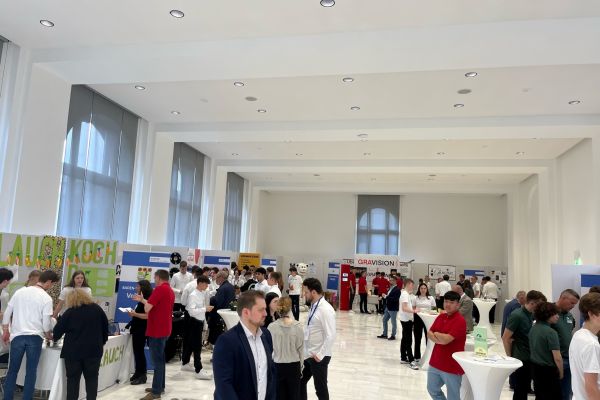 Anschließend wurde jedes Team von zwei verschiedenen Jury-Gruppen am eigenen Stand interviewt. Nachdem die Jury länger beraten musste, um sich zu entscheiden, wurden die Landessieger:innen verkündet: Es gewannen Teams aus Leonberg (selbstentwickeltes Krimispiel) und Rutesheim (Bildschirmfolien für besseres Schreibgefühl), die sich nun in Berlin mit den Vertretern der anderen Bundesländer messen werden.