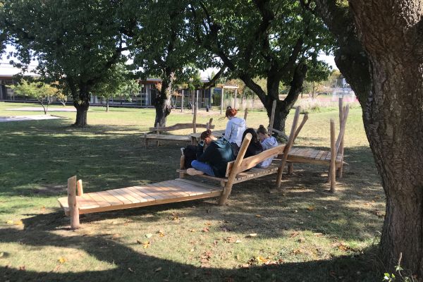 Seit gestern haben wir neue Outdoor-Sitzmöbel auf unserem Schulgelände!
